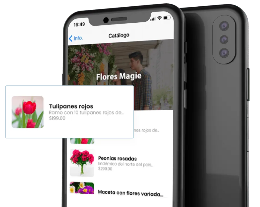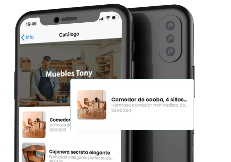 Ya no batalles más escribiendo a sus clientes el precio de todos sus productos o buscando la mejor foto para enviárselas. Nosotros te creamos tu catálogo digital para que tus clientes consulten tus productos en cualquier momento.